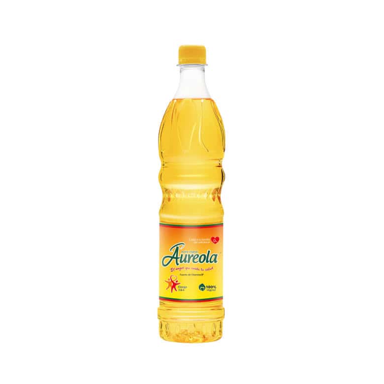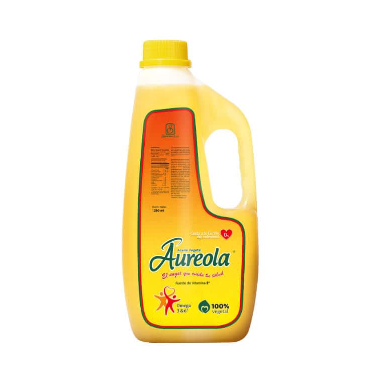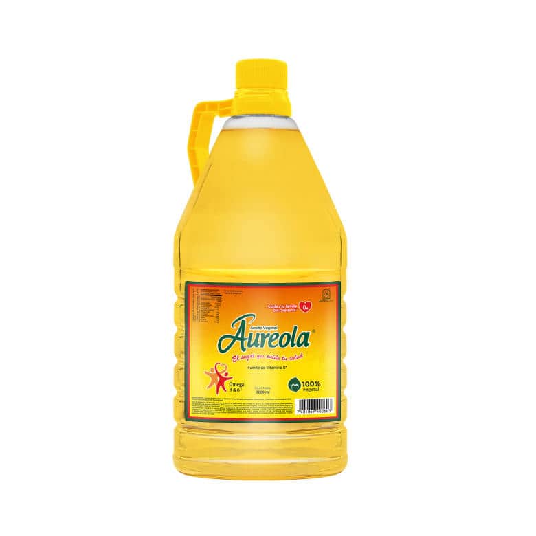 Aceite vegetal Aureola® es una marca de calidad suprema enriquecido con vitamina E, Omega 3 y 6 elaborado con una cuidadosa mezcla de oleína de palma y soya. Producto de origen 100% vegetal, libre de colesterol y grasas trans.