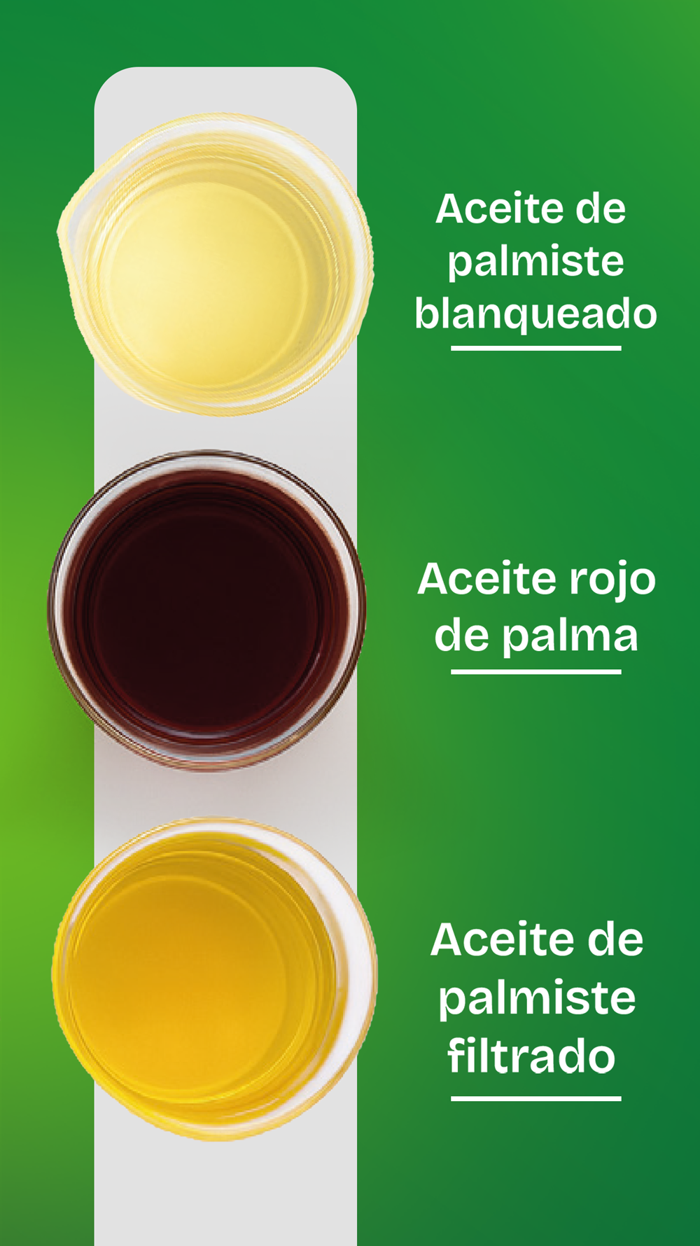 El aceite crudo de palmiste es un producto 100% natural, obtenido a partir de las almendras de la fruta de palma. Presenta sabor y olor característicos, con textura viscosa y aceitosa, propios de este tipo de aceite.